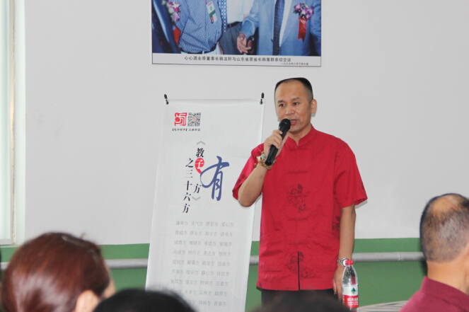 這是一場生動(dòng)的父母學(xué)堂課程。教子有方,以顯父母。所謂教,師也,施也。趙國彥院長具體在謙卑方、家規(guī)方、未來方等方面進(jìn)行了表述,主要圍繞上行下效來進(jìn)行對(duì)話。在2個(gè)多小時(shí)的課程中,員工們聽的非常認(rèn)真;聚精會(huì)神地聽趙老師與大家分享教子之道,在講到家庭和睦是最好的家庭教育時(shí)員工們非常贊同,熱烈鼓掌,以此表示對(duì)趙老師講解的方法的認(rèn)同。講到“教育”就是孝的文化的時(shí)候,員工們感動(dòng)地落下熱淚;講到由于教育方法對(duì)孩子產(chǎn)生不良后果時(shí),員工們也會(huì)低頭反思自己所犯下的錯(cuò)誤,發(fā)誓回去要給孩子承認(rèn)錯(cuò)誤,以取得孩子的諒解。最后講到家庭教育的傳承時(shí),大家一致認(rèn)為趙老師的《教子有方》這本書應(yīng)該是一個(gè)最好的家庭教育傳承工具。